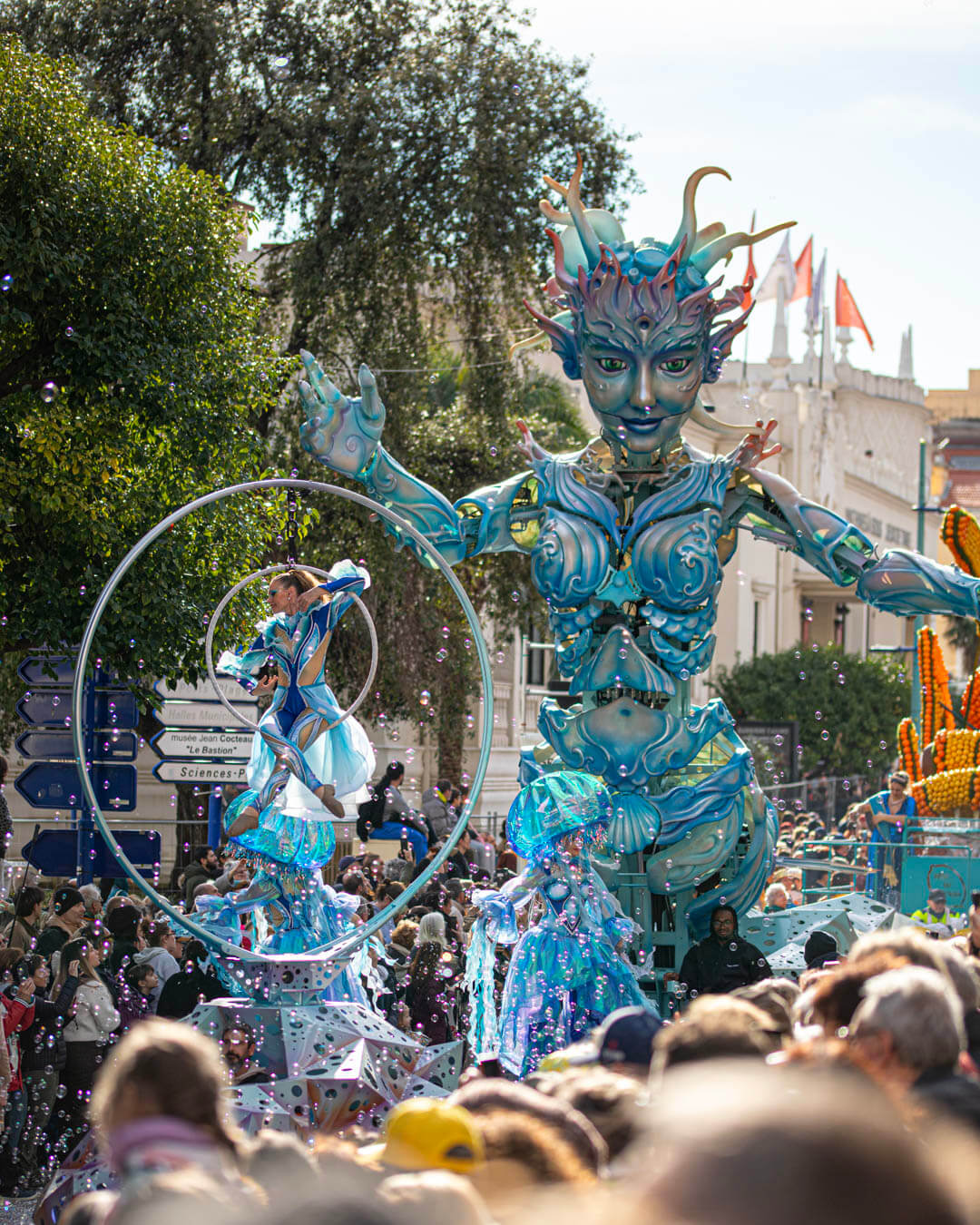 Place ensuite au show ! Nous avons A-DO-RÉ cette fête des citrons. Les chars sont tout simplement magnifiques, joliment décorés et très festifs. En plus des chars décorés avec des citrons, il y a de nombreuses animations et artistes qui viennent préformer : danseurs-danseurs, acrobates, circassiens… tout est somptueux ! On en prend vraiment plein les yeux. Il s’agit là d’une très belle fête, qui n’a pas perdu son âme festive et artistique ! Il faut saluer le travail de tous les bénévoles et des artistes sur place. Une fois la fête terminée, nous sommes allés à la plage, profiter de la mer (laissant ainsi la cohue s’éloigner un peu), pour ensuite rentrer dans notre appartement en fin de journée, en longeant la plage et en admirant le ballet des nettoyeurs de rues ramassant les confettis.