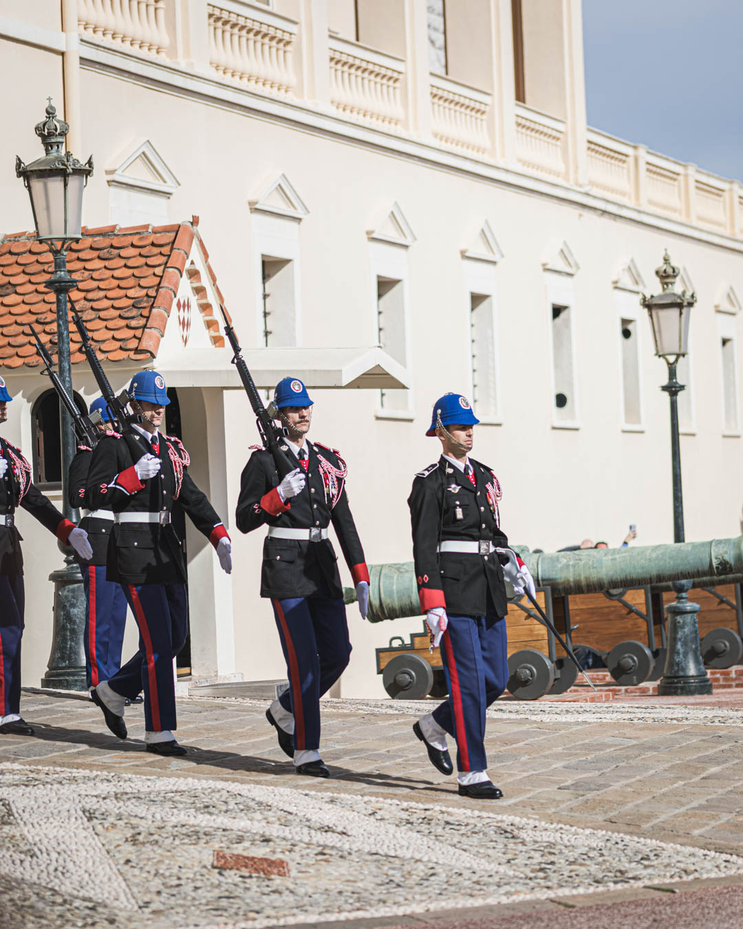 Après cette fantastique journée à Menton, nous avons pris le train direction Monaco ! C’était une grande première pour nous. Ce petit voyage, de quelques minutes en TER, est très agréable car il borde la mer et offre un somptueux paysage qui défile. Arrivés dans l’impressionnante gare de Monaco, nous prenons la direction du rocher. Après nous être “perdus” (volontairement) dans les rues, nous avions rendez-vous comme tout le monde à 11h55 devant le Palais Princier pour le relève de la garde. C’est un rdv très prisé des touristes, je vous conseille donc de venir tôt et d’attendre sur l’un des côtés ombragés, cela n’en sera que plus agréable. Le “spectacle” que nous offrent les gardes est très beau et vaut l’attente.