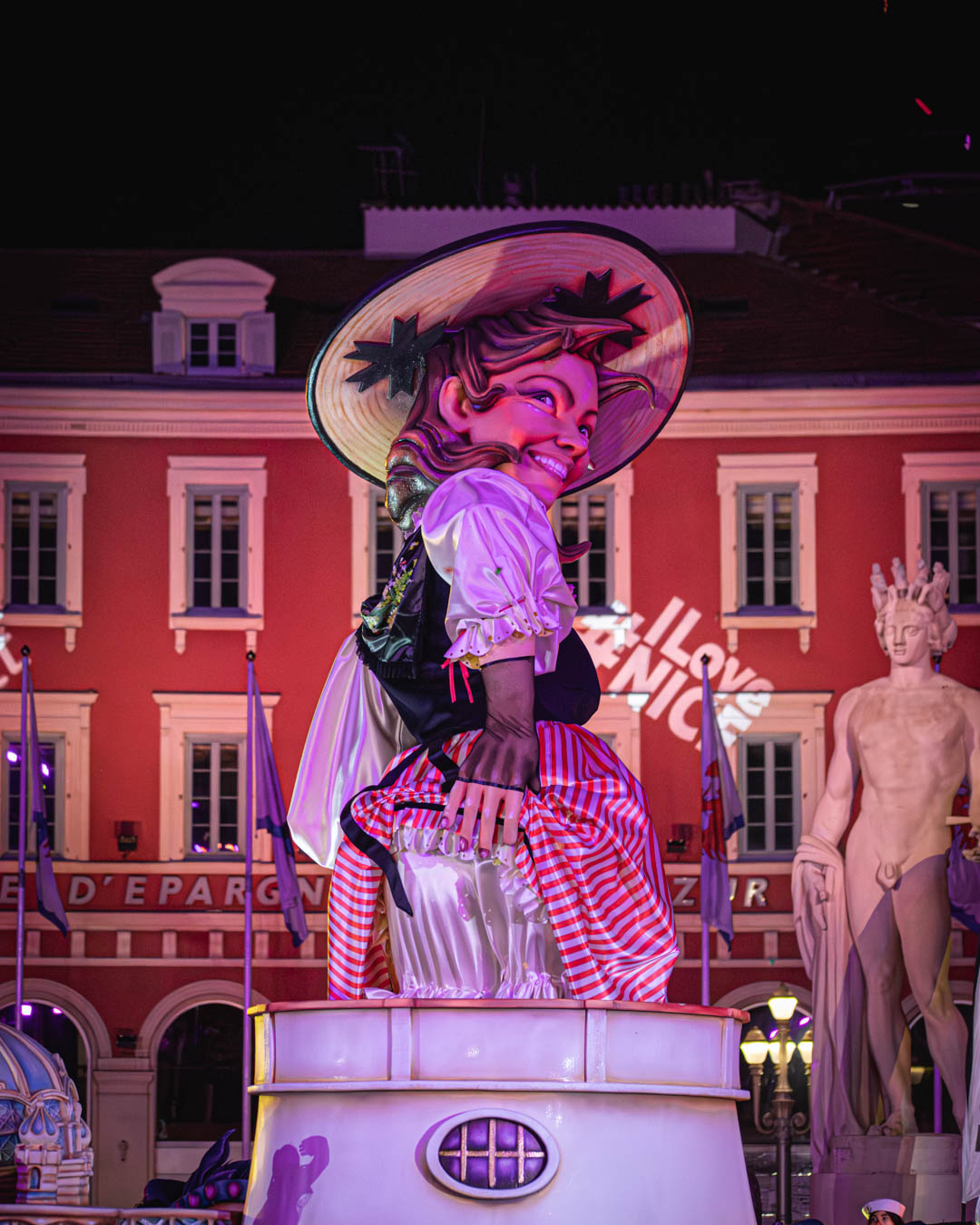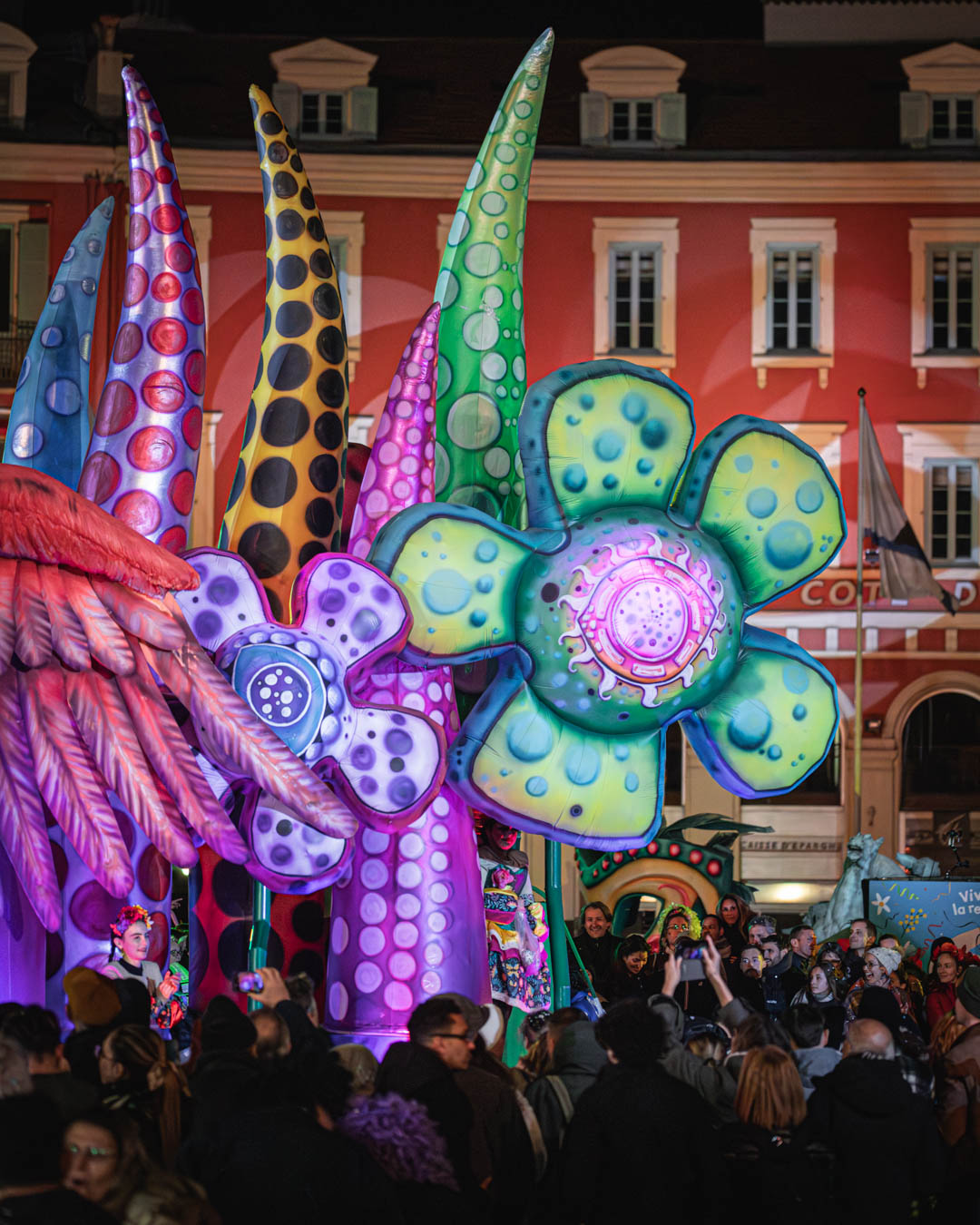 En milieu d’après-midi, nous avons pris la direction de Nice pour visiter la ville et surtout assister au Corso carnavalesque illuminé, une grande première pour nous. Ce carnaval en soirée demande de la patience (et des vêtements chauds) mais s’avère très festif. Beaucoup de personnes du public jouent le jeu d’être déguisés et prennent plaisir à faire la fête. Les animations pour nous occuper avant le spectacle ne manquent pas. Le défilé est très joli, mais nous avons été quelque peu déçus par celui-ci. En comparaison, nous avons nettement tous préféré Menton à Nice, car Menton est un évènement beaucoup plus “accessible”, plus artistique et plus joli. Nous avons senti une vraie âme, là où il manquait beaucoup à Nice, qui est une très grosse machine.