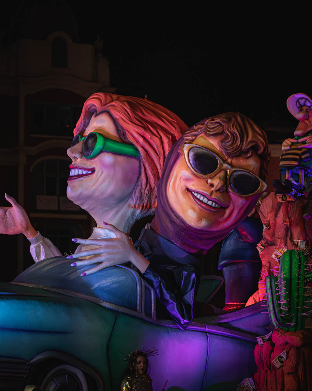 Grands amoureux de la nature et des fleurs, nous avons adoré ce dernier spectacle, magnifique et très travaillé. Les chars, tous décorés de fleurs et selon un thème (les reines cette année), rivalisaient pour nous en mettre plein la vue. Il y a également beaucoup d’artistes présents entre chaque chars pour animer ce défilé. On en prend plein les yeux, des couleurs, de la culture. En fin de défilé, les chars refont le parcours pour se dépouiller de toutes leurs fleurs et ainsi en faire profiter les spectateurs. Malgré les consignes des organisateurs, les gens écoutent peu et n’en font qu’à leur tête, chacun veut son bouquet, quitte à ce que les autres n’aient rien… Dommage.
